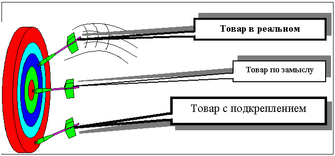 Товары могут не соответствовать потребностям, могут соответствовать частично и, наконец, полностью соответствовать потребностям, то есть быть так называемым идеальным товаром. Чем полнее товар соответствует желаниям потребителя, тем большего успеха добьется производитель. Понятие «товар» не ограничивается физическими объектами. Товаром можно назвать все, что способно оказать услугу, то есть удовлетворить нужду. Помимо изделий и услуг, это могут быть личности, места, организации, виды деятельности и идеи. Потребитель решает, какую именно развлекательную передачу посмотреть по TV, куда отправиться на отдых, какие идеи поддержать и т. д.