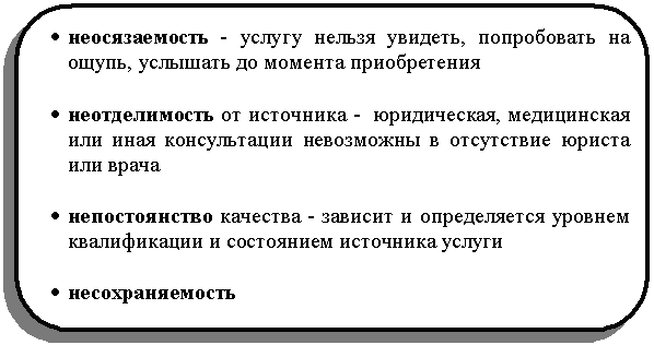 интеллектуальные (правовые, бухгалтерские, аудиторские, рекламные, маркетинговые, подбор персонала, управленческие);