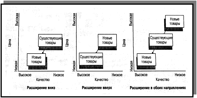 Наращивание ассортимента может идти либо вниз, либо вверх, либо в обоих направлениях одновременно (рис.4.).