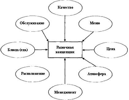 Для рыночной концепции ресторанного бизнеса важно сочетание выгодного расположения, качества кушаний и обслуживания, разнообразия меню, цен, атмосферы и менеджмента.