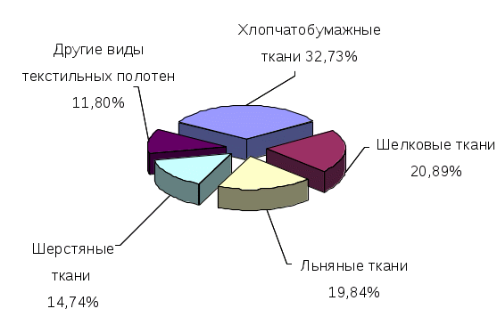 Что касается внешних связей с другими странами, то на экспорт идет около 20% выпускаемых тканей (рис. 3).