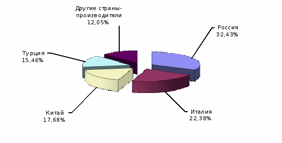 Импорт хлопчатобумажных тканей на российский рынок растет, однако, его доля пока невелика [40]. Этот фактор можно объяснить тем, что с сокращением экспорта, ткани российских производителей поступают на внутренний рынок, тем самым, замещая импорт. А с учетом роста конкурентоспособности продукции эта тенденция вполне предсказуема. В настоящее время на отечественном рынке тканей присутствуют изделия производства таких стран как Китай, Турция, Индия, Пакистан и др.