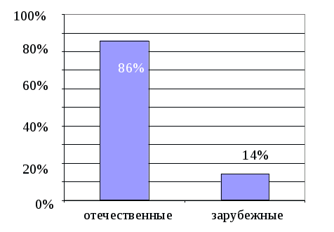Российский рынок хлопчатобумажных тканей всегда отличался тем, что основная доля на нем принадлежала тканям отечественного производства, и сегодня ситуация не изменилась. Такой результат можно наглядно рассмотреть, изучив диаграмму представленную на рисунке 1.