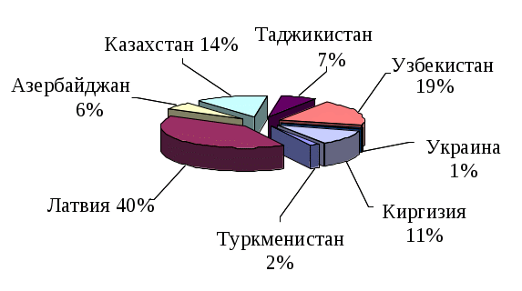 Рис. 3. Доли экспорта хлопчатобумажных тканей за 2004-2005 гг., %