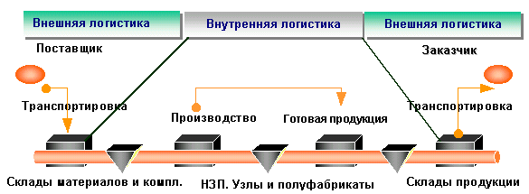 Цель производственной логистики заключается в обеспечении своевременного, ритмичного и экономичного движения материальных ресурсов между стадиями и рабочими местами основного производства в соответствии с планами производства и реализации ГП или заказами потребителей.