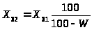 где m>1>— масса тигля с золой после прокаливания, г; m>2> — сумма масс тигля после прокаливания и золы беззольного фильтра, г; W — массовая доля влаги в испытываемом концентрате, %.