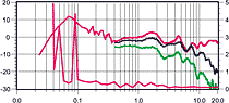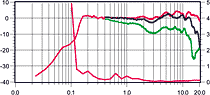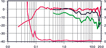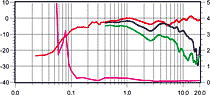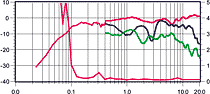 Все три графика АЧХ потрясающе линейны (явно сказались большие объемы корпуса, коаксиальные головки и грамотная конструкция). У комплекта — самый «громкий» центр, рассчитанный на 130 Вт. У тыловых каналов отмечается сильный провал на 11 кГц (под углом 45° этот «завал» отсутствует), плавно переходящий в «пики на высоких». Очень хороша у всех колонок диаграмма направленности — профиль графика почти полностью повторяет своего предшественника, снятого на оси прослушивания. КНИ центрального канала — лучший в тесте и составляет всего 0,15% (при уровне сигнала 82 дБ).