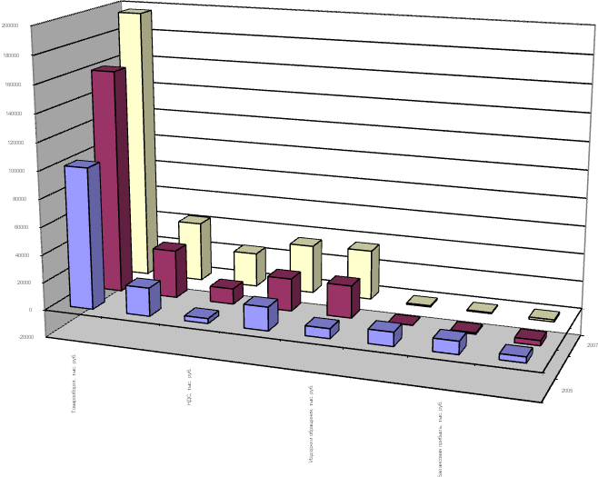 Показатели по балансовой прибыли в 2007 г. улучшились. Наибольшую долю в балансовой прибыли занимает прибыль от реализации товарной продукции. Из-за того, что от внереализационных операций получен убыток, балансовая прибыль меньше прибыли от реализации.