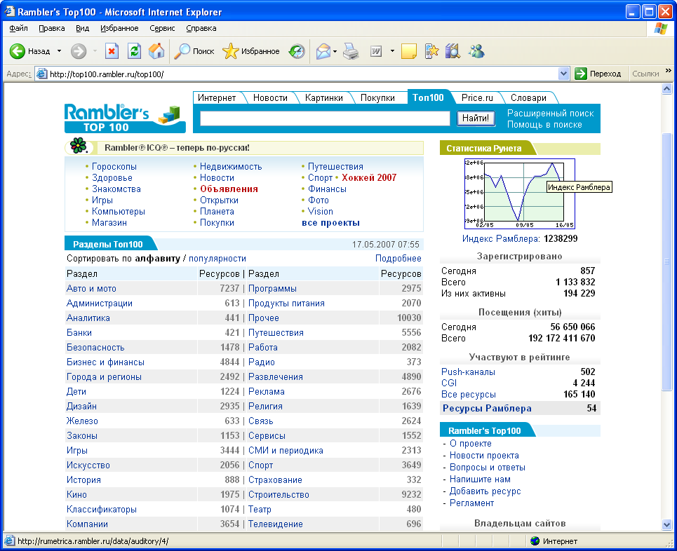 Рунете - Рамблер (http://www.rambler.ru).