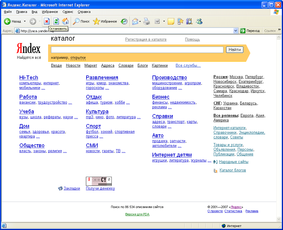 (http://www.yandex.ru). Регистрация проводится