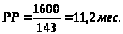 РР – срок окупаемости инвестиций; J – сумма инвестиций в проект; P>s> – среднемесячная прибыль.