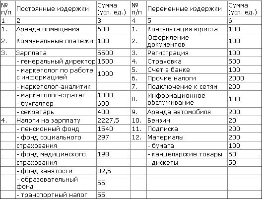 Расчет прибыли осуществляется исходя из суммы внутрипроизводственных расходов по всем видам деятельности в рамках данного инвестиционного проекта, прогнозируемых розничных цен на продукцию и услуги фирмы, объемов сбыта продукции и услуг (в номенклатуре) в месяц.