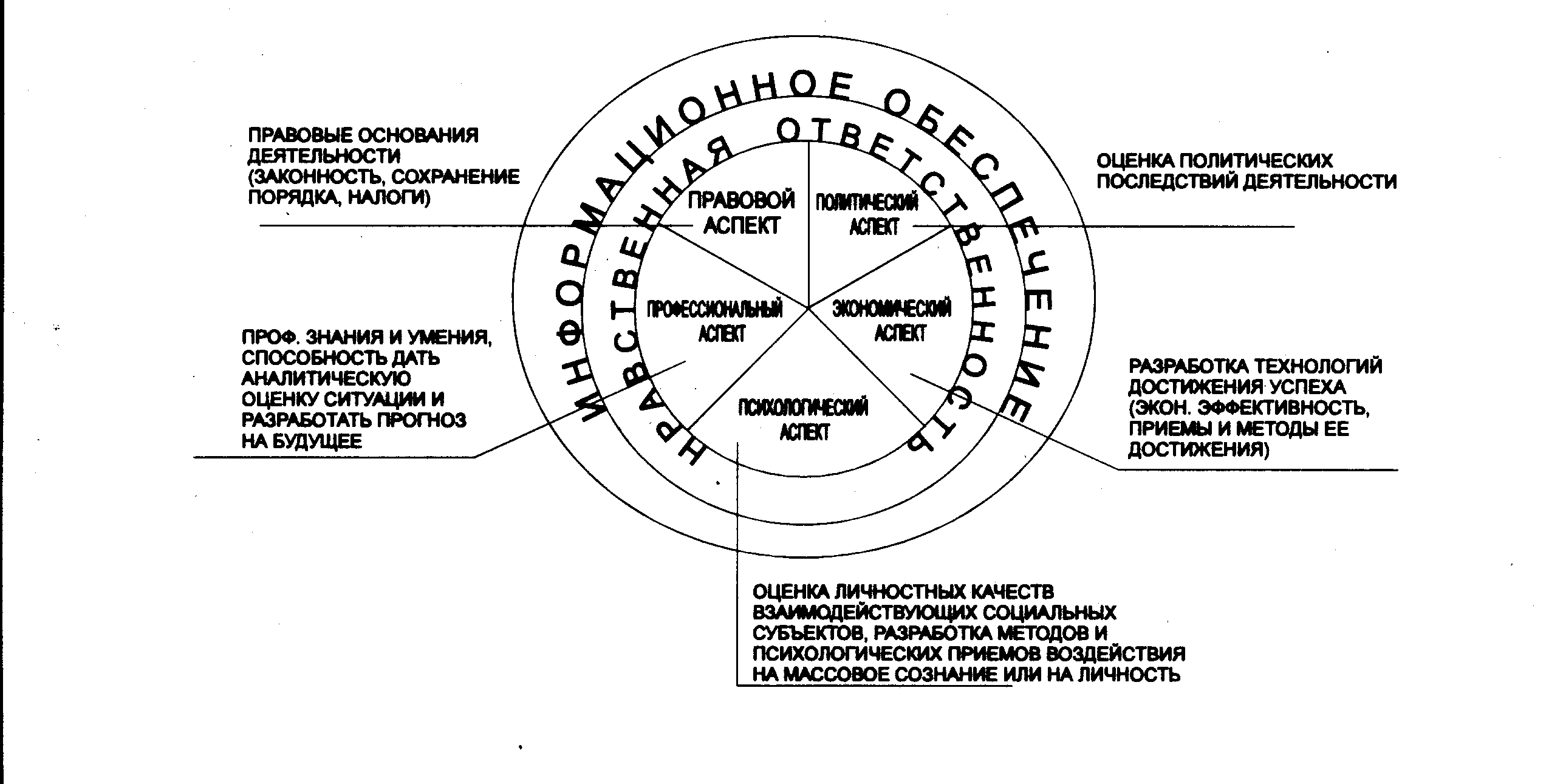 Информационный и нравственный аспекты являются необходимым компонентом каждого из составляющих компонентов структуры профессиональной деятельности. Однако информационный выбор (отбор информации) зависит от меры нравственной ответственности и личностных нравственных качеств специалиста - субъекта деятельности (его честность, порядочность, верность долгу и т.д.).