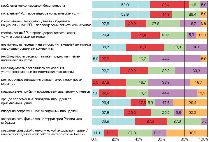 Как большие проблемы определили необходимость расширения пакета предоставляемых логистических услуг, поддержание прибыли под ценовым давлением клиентов, долгосрочные отношения с клиентами, поиск новых.