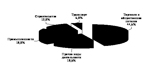 Увеличение числа малых предприятий отмечено в строительстве (+10%) и на транспорте (+79%), т.е. в отраслях, развивающихся в регионе наиболее динамично. Вместе с тем, заметно снизилось количество предприятий в торговле и общественном питании (-17%).