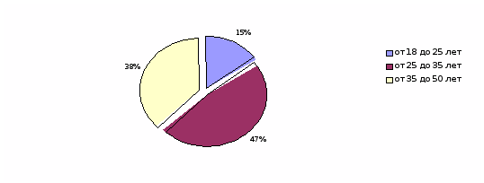 Анкетирование проводилось в соответствии с планом маркетинговых мероприятий в течение двух недель. Анкетирование позволило определить интересующие нас сегменты. Данные сегменты возрастной категории отражены в диаграмме (рис.1).