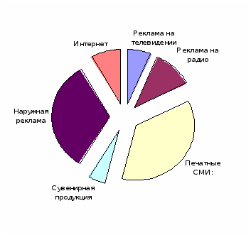 Рисунок 13 – Распределение бюджета рекламной кампании по видам рекламных средств
