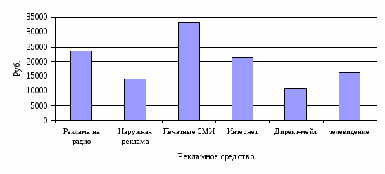 Как видно из таблицы 39, рекламный бюджет ООО «Рекламное агентство» рассчитан на 66949 рублей. На рисунке 13 показано распределение бюджета по рекламным средствам.