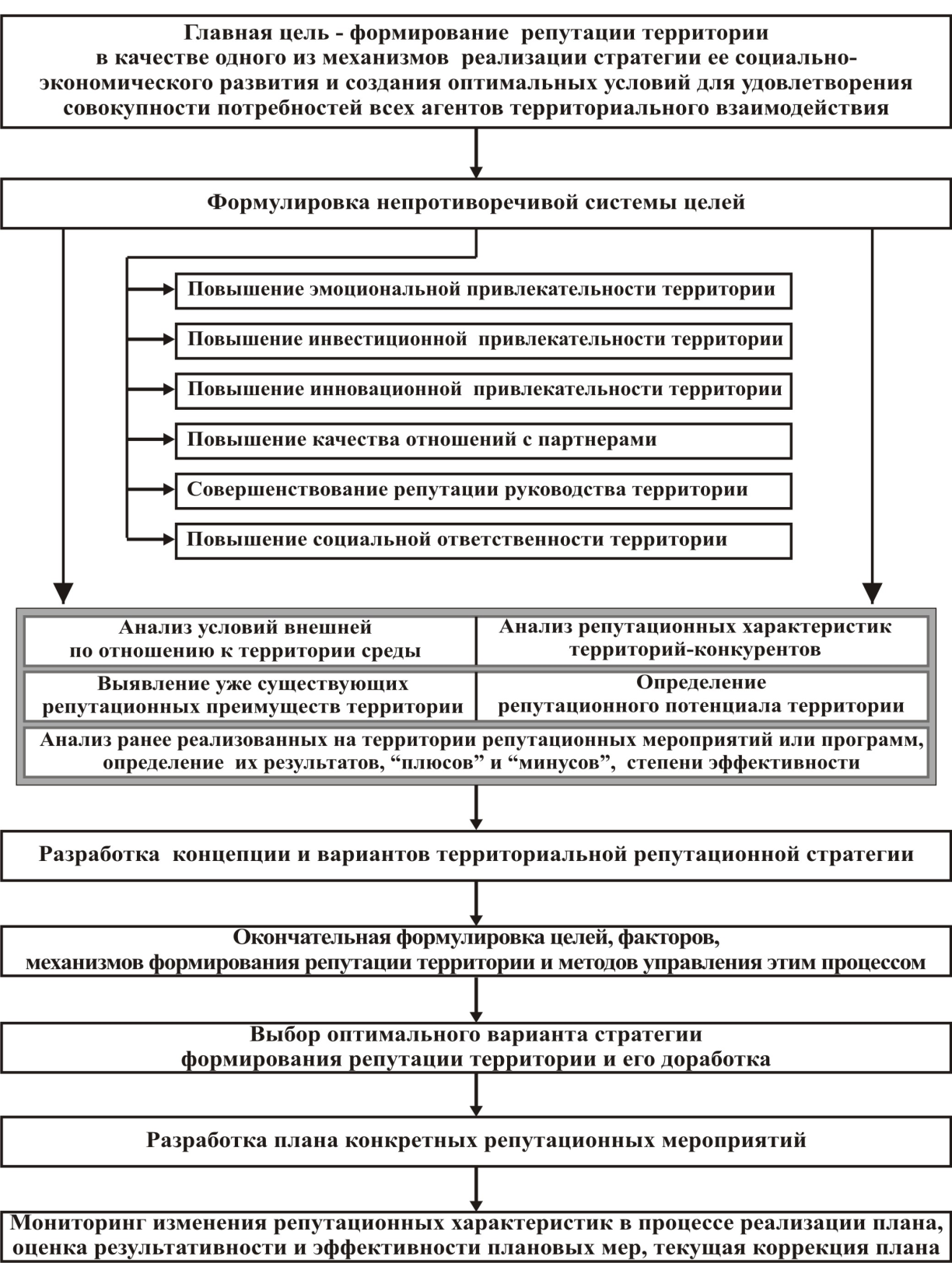 Под маркетингом территории «в узкой» трактовке понимается стремление дороже «продать» реальные товары, имеющиеся в магазинах территории, а также активная реклама сильных сторон своей территории, как места, удобного, привлекательного для жизни и предпринимательства. При «узком» понимании маркетинга территории основной упор делается на формировании внешнего имиджа территории (территории в целом, территории как пространства для проживания, территории как места, где производятся покупки, территории как исторического и культурного центра и т.п.)5. При более широкой трактовке понятия «маркетинг территории» речь идет не только о формировании благоприятного имиджа территории, рекламе привлекательных черт территории, но и понимании местных слабостей, необходимости преобразования среды в целом и отдельных ее элементов, чтобы сделать территорию более благополучной для жизни и привлекательной для производства, и реализации этих установок, обеспечив приток инвестиций и экономический рост.
