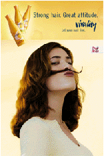 На рисунке 4 представлена листовка компании “Wella”, которые можно встречаются на улицах города. Слоган в переводе с английского языка означает следующее “Сильные волосы. Превосходная внешность”. С таким слоганом можно сказать, что компания показывает свою силу и мощь. Использование желтого цвета в рекламе привлекает внимание, заставляет вспомнить о теплом солнце. Так же выигрышно от флаконов шампуней исходят лучи солнца подающие модели на волос. Тем самым, показывая, что пользуюсь данным шампунем, ваши волосы будут блестеть. Локон, который обвивается между носом и губами модели заставляет задуматься о приятном запахе продукции. А хитрый и уверенный взгляд говорит о том, что девушка уверенна в себе, своей внешности, в том числе и в волосах. Ярко смотрится логотип компании, выполненный в красном цвета на бежевом фоне. На листовке видно, что данную продукцию рекламирует молодая девушка с натуральным каштановым цветом волосом. На основе этого можно сделать вывод, что данная реклама для молодых девушек предпочитающих естественность.