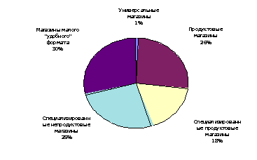 С точки зрения используемых концепций магазинов и наиболее распространенных форматов розничных торговых точек в мировой торговле отмечается лидерство крупных отдельностоящих магазинов и комплексных торговых центров.