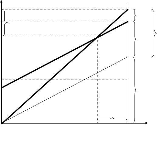 Точка пересечения прямых 1 и 2 – точка безубыточности (т.БУ). Точки пересечений перпендикуляров, опущенных из т. БУ на оси координат дают значения критического объема (Мкр – на горизонтальной оси) и порога рентабельности (Rр – на вертикальной оси).
