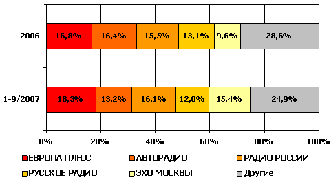 Похожая ситуация в рекламе Сбербанка и на радио – наибольшие затраты пришлись на Европу Плюс и Авторадио, не очень сильно отстают от них Радио России и Эхо Москвы.