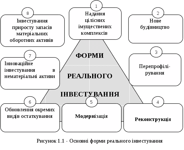 Реальні інвестиції здійснюються підприємствами в різноманітних формах, основними з яких представлені на рисунку 1.1.