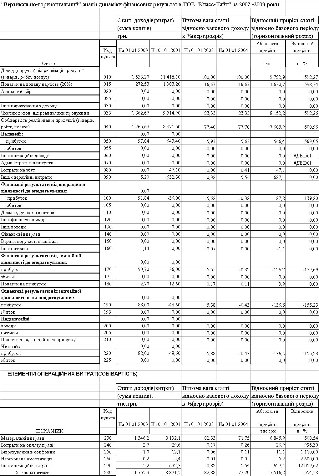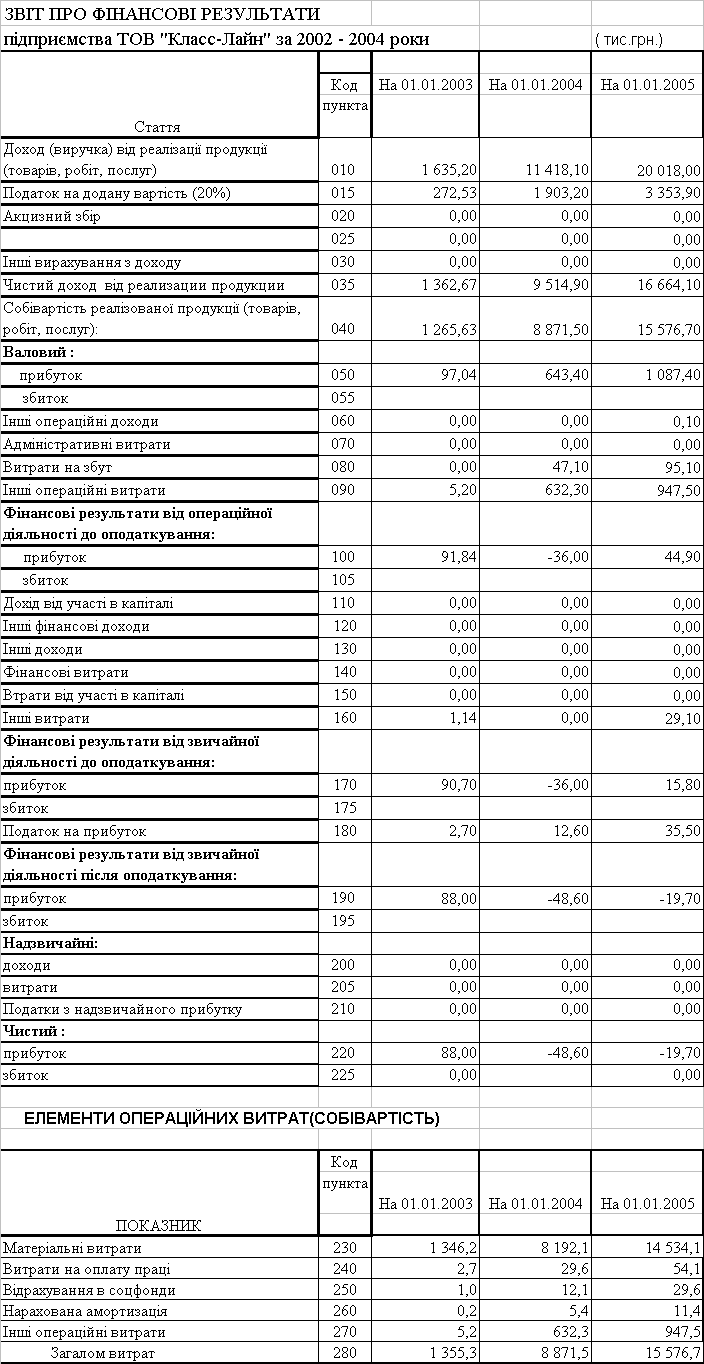 2.1 Аналіз фінансової діяльності торгово-посередницького підприємства ТОВ „Класс-Лайн”
