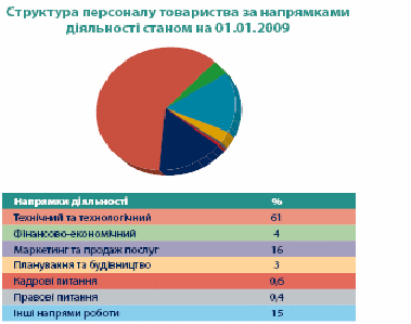 Рисунок 1.3 - Структура персоналу товариства за напрямками діяльності станом на 01.01.2009.