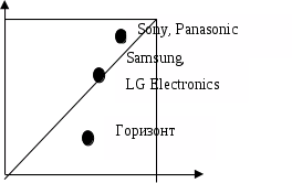 Все, что лежит на оси удовлетворяет принципу "Качество соответствует цене". Если товар расположен ниже оси – слишком высокая цена с точки зрения качества, выше оси – выигрыш по цене относительно качества.