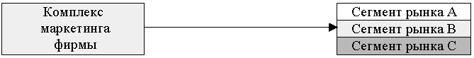 Если товар предназначен лишь для определенной группы покупателей и предприятие выбирает некоторый сегмент рынка и разрабатывает для него соответствующий комплекс маркетинга, это значит, что реализуется целевой (концентрированный) маркетинг (рис.5.).