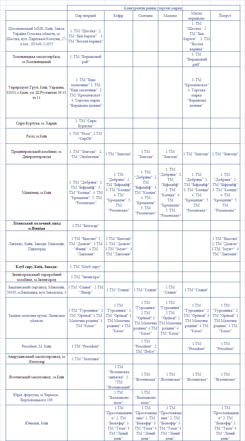 СИТУАЦІЙНИЙ АНАЛІЗ УМОВ ЗБУТОВОЇ ДІЯЛЬНОСТІ КИЇВСЬКОГО ТОРГІВЕЛЬНОГО ПРЕДСТАВНИЦТВА ЗАТ „ГАЛИЧИНА” (М.РАДЕХІВ, ЛЬВІВСЬКА ОБЛАСТЬ) НА РИНКУ МОЛОЧНИХ ПРОДУКТІВ КИЇВСЬКОЇ ОБЛАСТІ