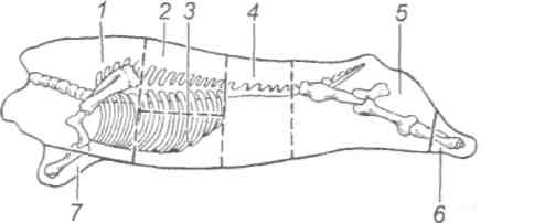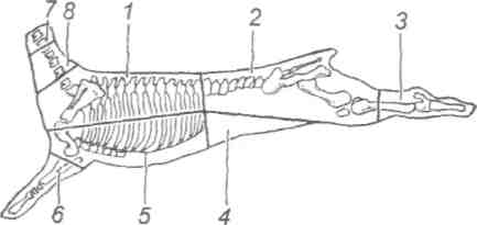 5 — грудинка (II сорт); 6 — рулька (III сорт); 7 — заріз