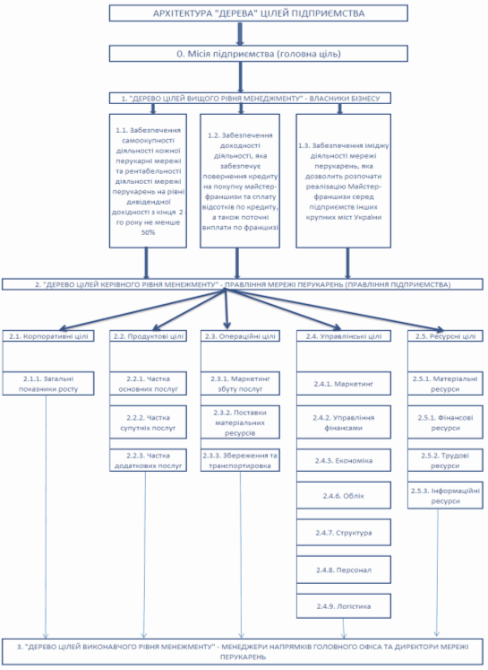 2.1.5 Структура цілей проектів "нижнього рівня управлінської піраміди бізнесу Мережа дитячих перукарень"