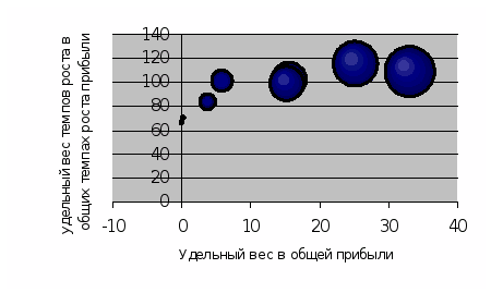 Рисунок 2 Матрица «Доля прибыли – доля в росте прибыли» в разрезе ассортиментных групп молочной продукции ОАО «Бурёнка»