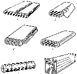 Подготовленные таким образом текстильные материалы и штучные изделия помещают в фанерные или деревянные ящики (жесткая внешняя упаковка), или обертывают бумагой и зашивают в паковочную хлопчатобумажную или синтетическую ткань (мягкая внешняя упаковка), или капу, со всех сторон покрывают оберточной и паковочной тканью, прессуют, кладут деревянные планки и обвязывают железной проволокой или лентой (полужесткая внешняя упаковка). К мягкой таре относят кипы, тюки, мешки, рулоны (Рис.6).
