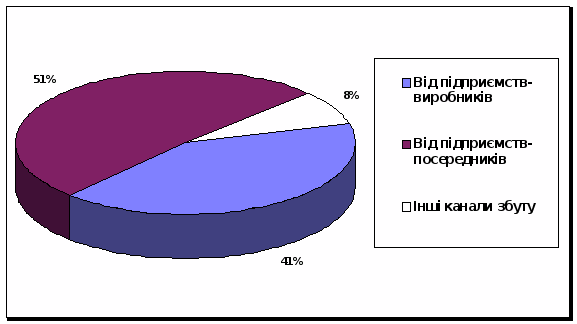 6. Вивчення каналів збуту шампанських вин у роздрібній торговельній мережі показало, що структура каналів збуту шампанських вин не рівномірна: 41% надходить у магазини від підприємств-виробників, 51-від малих підприємств-посередників; 8%-через інші канали збуту. Практично відсутня фірмова торгівля. Висока частка поставок у торгівлю через посередників свідчить про необгрунтоване завищення торгових надбавок, що тягне за собою ріст роздрібних цін, а це в свою чергу, ускладнює реалізацію.