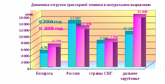 В последние годы в странах СНГ, в том числе и в Республике Беларусь, наблюдается рост фермерских хозяйств, садоводческих кооперативов и приусадебных участков. Это обуславливает потребность в малогабаритных тракторах и приспособлений к ним. Поэтому мы предлагаем расширение номенклатуры малогабаритной техники и увеличение ее объемов продаж, особенно на рынке СНГ. Учитывая низкую платежеспособность колхозов и совхозов России и Украины и невозможность большинства из них покупать новые тракторы, надо увеличить число лизинговых сделок на этих рынках.