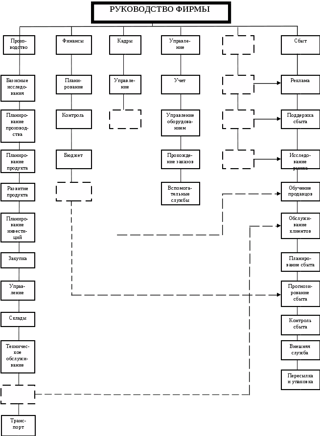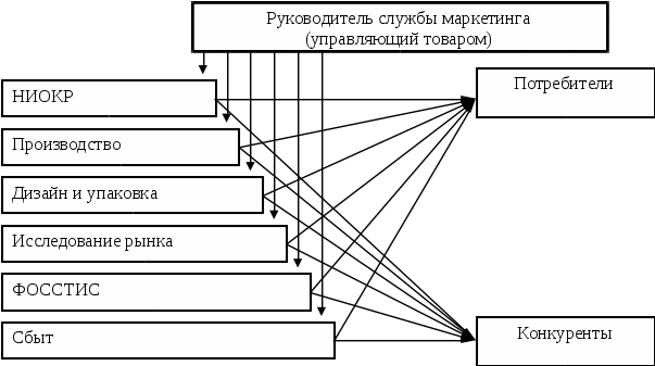 С другой стороны, внедрение маркетинга в существующую в течение десятилетий и подвергающуюся тем или иным изменениям организационную структуру фирмы не может не воздействовать на организационную структуру маркетинга, которая вынуждена учитывать общие принципы построения в фирме структуры управления и формы их реализации.