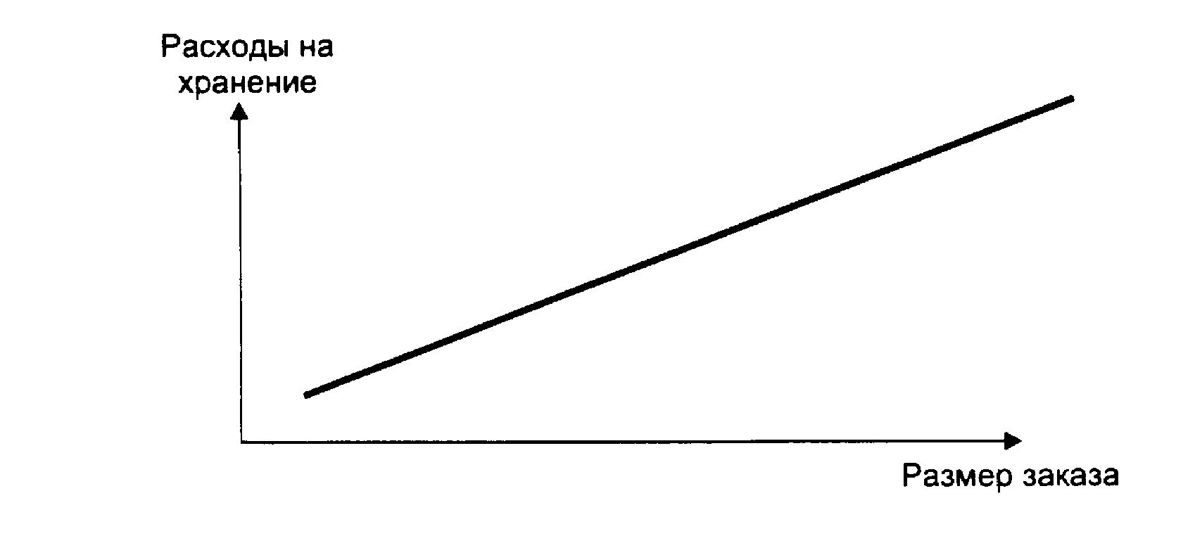 Расходы по хранению растут прямо пропорционально размеру заказа. Эта зависимость графически представлена на рис. 2.