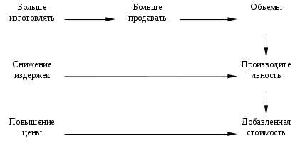 Стратегия заключается в том, чтобы руководство четко понимало пути и способы достижения поставленных количественных (финансовых) и качественных целей. В этом как раз и суть разработки стратегии – каким путем мы будем достигать оборота, скажем, в 1 миллиард рублей в месяц? Что надо для этого сделать? Каких конкурентов учесть, что и каким покупателям продавать, каких поставщиков выбрать в партнеры? [22, с.16.].