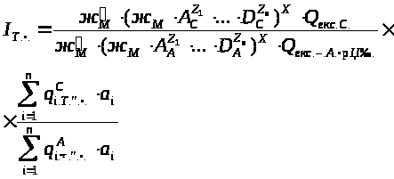 Вираз, укладений в перші квадратні дужки, групує показники призначення і являє собою індекс призначення, а в других - показники технічного рівня.