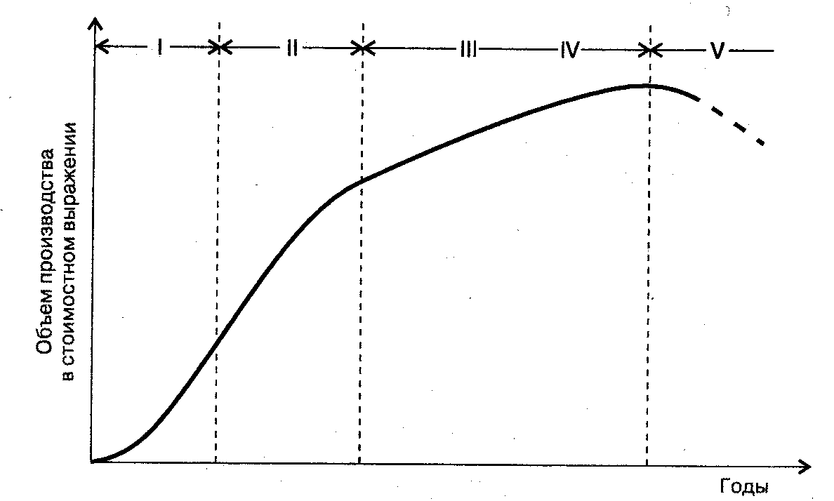 • рост (промышленное освоение с одновременным выходом продукта на рынок);
