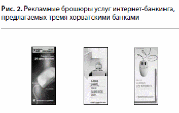 В июне 2009 г. хорватский банковский сектор насчитывал 34 коммерческих банка, шесть из которых являются крупными (18%), три — средними (9%) и 25 — мелкими (74%) [5]. Исследование 2009 г. по определению уровня интернетмаркетинга в хорватских банках выявило, что все коммерческие банки взаимодействуют со своими клиентами с помощью сайтов. Некоторые из них распространяют рекламные проспекты с услугами интернет-банкинга (рис. 2).