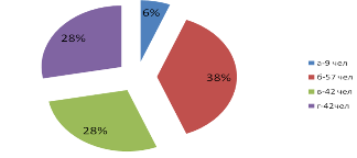 а) от 18 до 25 - 33 чел. (22%) в) после 60 - 12 чел. (8%)