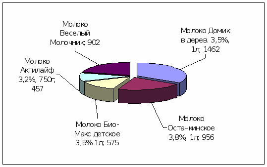 Рынок молочной продукции, а именно молока с высоким содержанием жиров, имеет достаточно высокий уровень конкуренции. Только в одной торговой точке представлено до пяти видов молока и. Таким образом, у молока «Веселый молочник» имеется четыре непосредственных конкурента на рассматриваемом рынке.