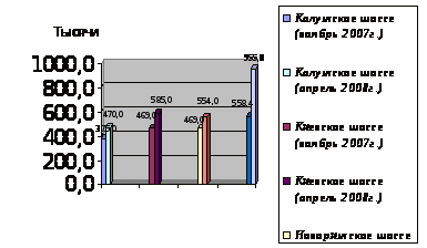 Таблица 2. Динамика цен на земельные участки ближайшего Подмосковья за период ноябрь 2007 – апрель 2008 гг.