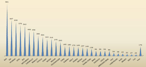 Зростання відбувається за рахунок колишніх кредитних автомобілів. Але ситуація з попитом далеко не однорідна. Так, іномарки продовжують користуватися популярністю, у той час як збут ВАЗів та інших російських авто впав майже на 40%. Українці віддають перевагу перевіреним брендам. Продажі Volkswagen, Toyota, Mercedes-Benz, BMW, Skoda, Mitsub>ishi, Hyundai, Kia демонструють істотне зростання. Однак лідерство продовжують утримувати ВАЗ (30% ринку), Daewoo (6,7%), Volkswagen (5%).