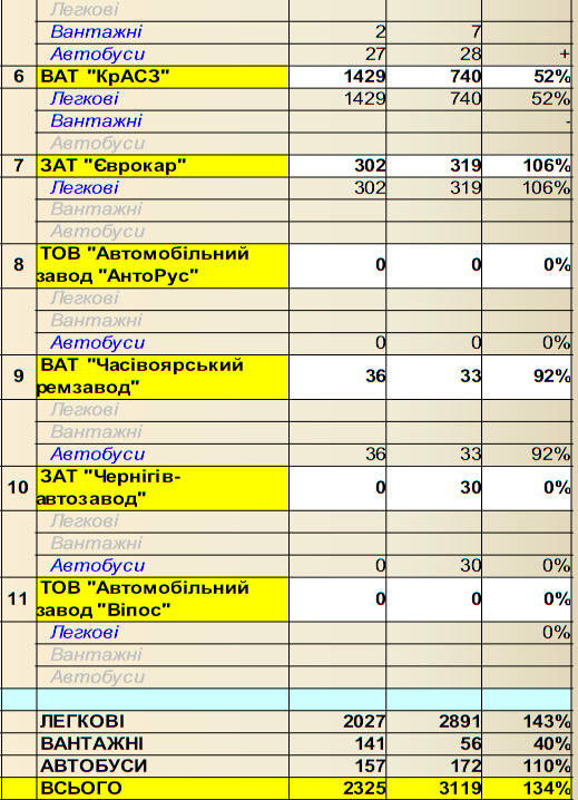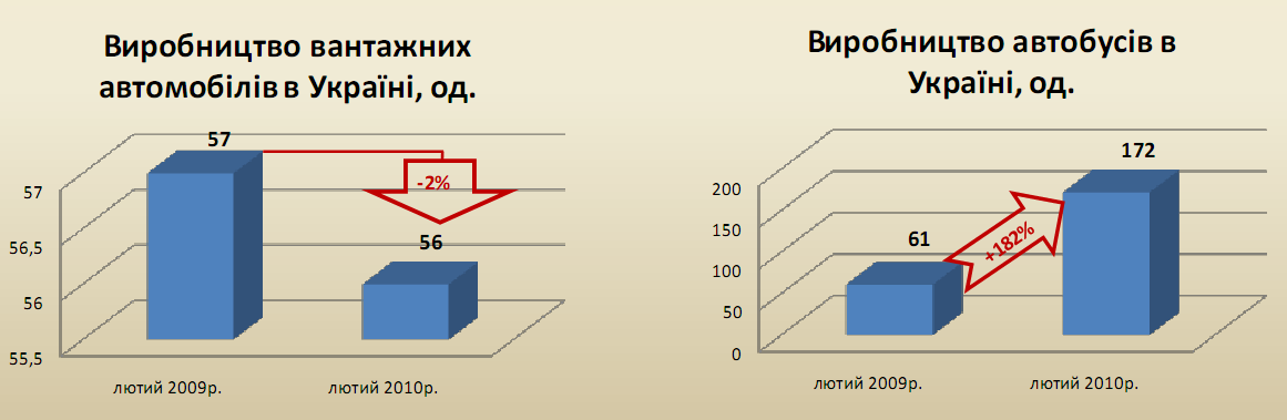 Таблиця 1 - Обсяги та динаміка виробництва автотранспортних засобів в Україні січень лютий 2010 року (шт.).